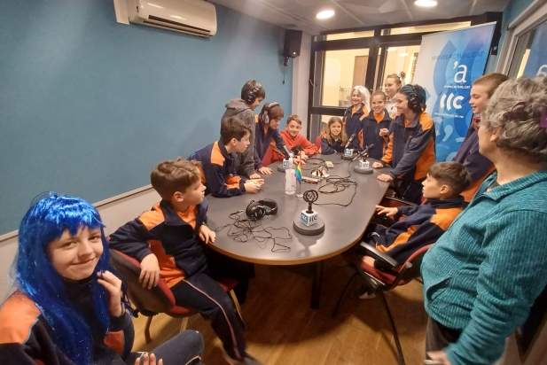 Aquest dimarts, diversos estudiants de l'escola castellarenca han visitat les instal·lacions de l'emissora municipal