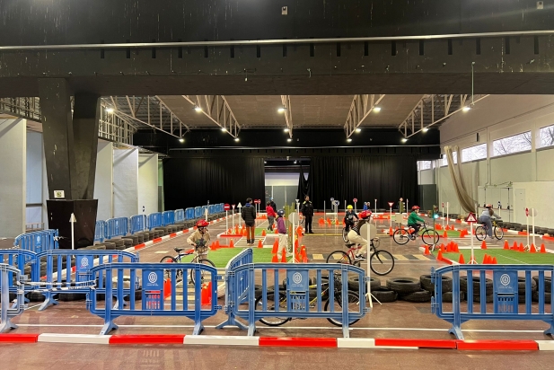 El curs d’educació viària s’ha completat amb una part pràctica que s’ha portat a terme la setmana del 19 al 23 de gener en un circuit de bicicletes que s’ha instal·lat a l’Espai Tolrà . El circuit simula un poble, on hi són presents els elements de circulació d’un municipi real com ara els carrers, els semàfors o els passos de vianants.