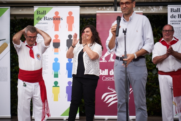 Per això, al tractar-se d'una efemèride tan especial, "hem acordat amb la resta de grups municipals al consistori atorgar la medalla de màxim reconeixement, la Medalla de la Vila, a la nostra colla de bastoners. I, en aquest moments, ha començat a ploure amb la qual cos s'ha hagut de suspendre momentàniament l'exhibició que s'havia de fer a la plaça d'El Mirador. Posteriorment, s'ha reprès la ballada a la plaça del Mercat, a l'espai cobert que hi ha sota de la plaça d'El Mirador.