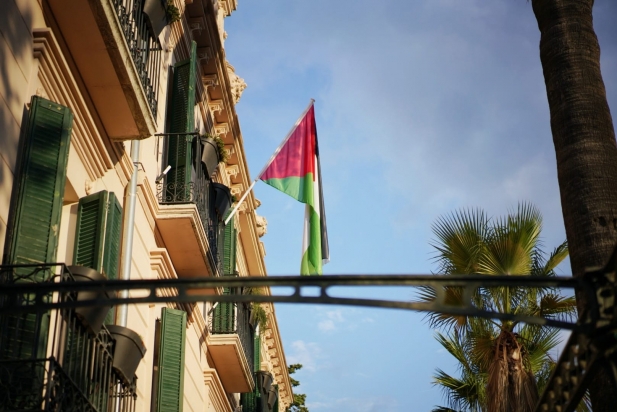 Finalment, i per posar el punt final a l’acte, s’ha penjat la bandera palestina al balcó de l’Ajuntament per mostrar el suport i respecte al poble palestí.