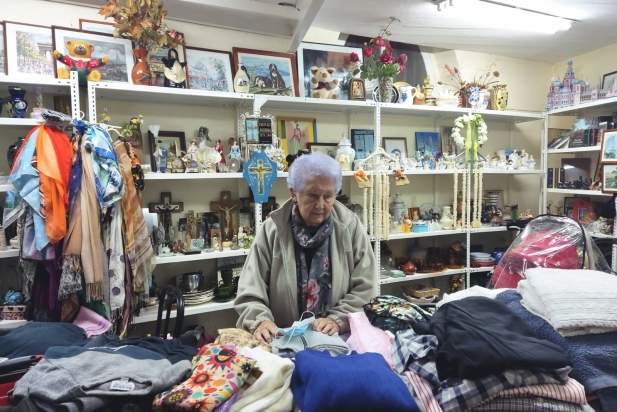 Fa molts anys que Maria Antònia Romeu es cuida de La Botigueta amb altres companyes. “Fa 24 anys que hi col·laboro”, diu mentre endreça uns pantalons. A La Botigueta, amb accés per la porta esquerra de l’església Sant Esteve, trobem molts objectes de segona mà. La finalitat d’aquesta iniciativa és triple, d’una banda, que persones amb pocs recursos puguin comprar roba, decoració o productes per a la llar, de l’altra, apostar per la sostenibilitat i donar una segona vida als articles i per últim, recaptar diners i destinar-los a la parròquia de Sant Esteve. “Fa molts anys que funciona La botigueta. Allà es venen articles de segona mà, a un preu simbòlic, gairebé tot a un euro. És una manera d’evitar que la gent llenci les coses que té a casa i si traiem alguns diners per a la parròquia, benvinguts siguin”, diu mossèn Joan Artur Boardman, rector de la Parròquia de Sant Esteve de Castellar del Vallès.