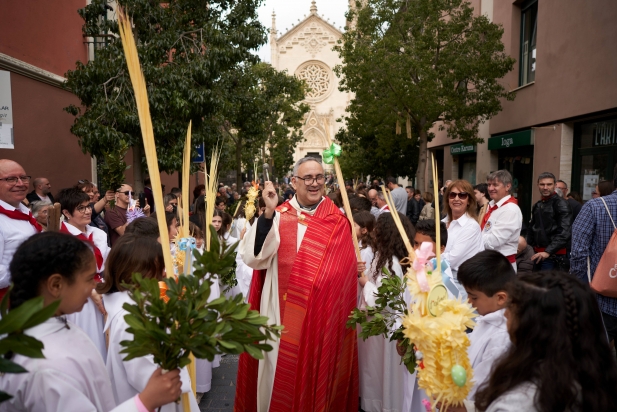 La celebració de Diumenge de Rams marca el tret de sortida de Setmana Santa. És una tradició que encara perdura en el temps tot i que cada vegada es veuen menys parades a peu de carrer de venda de palmes i palmons. Com és habitual, desenes de castellarencs i castellarenques han volgut participar en la benedicció oficiada pel rector de la parròquia de Sant Esteve, Xavier Blanco, a les portes de la Catedral del Vallès. Fins i tot s’ha sumat a la trobada la colla de bastoners de Castellar, que ha acompanyat la comitiva en la recta final de la benedicció.