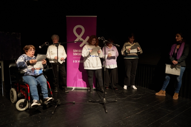 L’acte institucional del 8M va incloure l’actuació de la coral Atzamares i la lectura de contes de Katherine Mansfield amb la Biblioteca Municipal i l'ETC