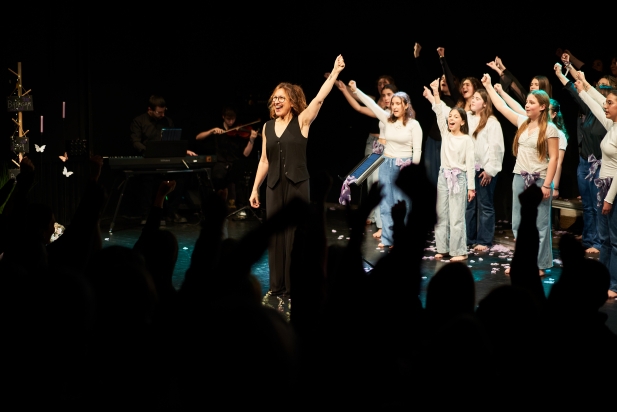 Després de la lectura del manifest, va ser el moment musical on el grup Llum a l’Escena va interpretar diferents temes. Sònia Gatell, l’encarregada de dirigir els diferents cors que formen el grup, assegurava que l’espectacle estava dedicat “a totes les dones que van ser, les que som i les que vindran”. Al llarg de proposta musical, els cors van adaptar al català cançons com ‘This is me’ del musical The Greatest Showman o ‘Seasons of love’ i ‘Another day’ de Rent. Durant l’espectacle també van cantar la cançó ‘Mamá’ de Rigoberta Bandini on fins i tot van demanar la col·laboració del públic.