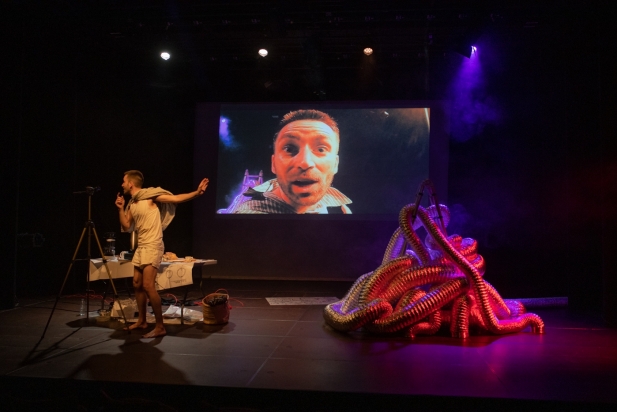 L'escriptor modernista Santiago Rusiñol va reviure a la Sala de Petit Format de l'Ateneu aquest cap de setmana amb la proposta L'escudellòmetro, a càrrec de Pau Gómez. Amb una versió actualitzada del text del dramaturg català, Gómez emprèn una tasca subversiva, la de desestructurar el text per combinar-lo amb la performance, el joc de llums, les veus en off i les eines audiovisuals més actuals.