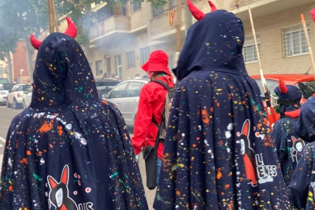 Els vestits han estat dissenyats i teixits per la Ruth, del Club Costura Creativa de Sant Llorenç Savall (@clubcosturacreativa), amb qui la colla ha volgut col·laborar per donar suport al talent i a l’emprenedoria local. A més, els infants i joves de la colla hi han aportat el seu toc personal, decorant les peces amb pinzellades de colors que mantenen viva la imatge tradicional de Les Espurnes: espurnes de colors sobre fons blau marí, ara amb patrons més moderns i còmodes per ballar i actuar.