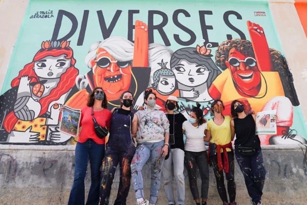 La castellarenca se suma a les sis artistes, entre les quals es troben Raquel Riba, Marina Capdevila i Amaia Arrazola, que han elaborat un mural en una de les façanes de l'antiga presó, en el marc d'un projecte de la revista Femiñetas