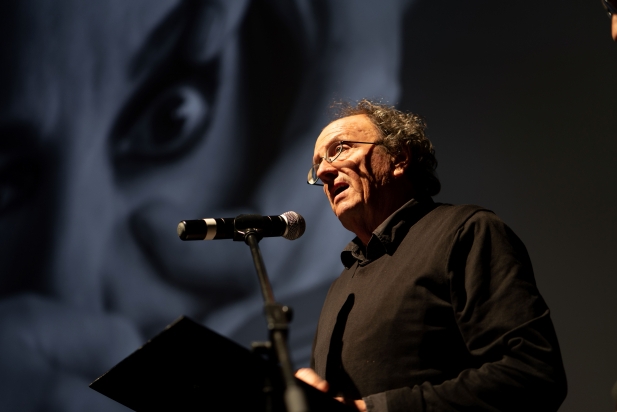 Pere Joan Ventura entrega el sac de mongetes al director Ken Loach, guardó del BRAM! de fa set anys