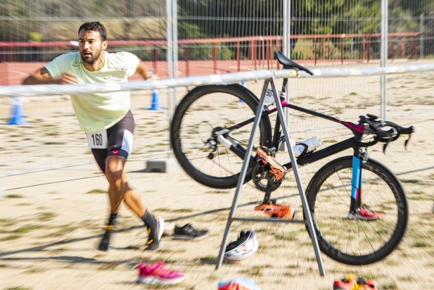 Els cinc primers quilòmetres de cursa a peu van transcórrer pel tartà de Colobrers i el circuit de cros, on Cesc Godoy (Fast-triatlon CN Montjuïc) i Alberto Casado (CT Granollers) aviat van destacar-se de la resta de competidors. En una de les primeres proves de la temporada i on molts triatletes han aprofitat per a iniciar la temporada, el de Palau de Plegamans sorprenia a tothom seguint el ritme del ‘tauró’ en el primer tram, que completaven en poc més de 17 minuts.