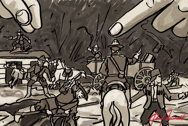 Quan era menut gairebé mai vaig tenir cap joguina directament relacionada amb el bel·licisme. A tot estirar i, tot fent un esforç de memòria, crec haver disposat d’un barret de cowboy, d’un parell de cartutxeres amb les seves respectives pistoles de plàstic i una llampant estrella de xèrif (per poca cosa, no m’hi devia posar). Admeto que no m’atreia gens aquest món dels trets, tot i que per res en concret, sinó per una simple qüestió d’afinitat amb la resta de nens amb qui compartia els jocs. És gairebé segur que, amb aquests antecedents, no haguera estat un gran militar, però tampoc vaig ser un gran futbolista, si bé és cert que de puntades de peu a la pilota en vaig arribar a clavar molts centenars de milers... Sigui dit de passada, i posats a ser justos, una vegada vaig demanar una carabina d’aire comprimit per fer “punteria” i a totes les portes on vaig trucar se’m va donar la mateixa resposta: que em fes retratar, perquè aquell estri a més ser “carregat pel dimoni” a casa nostra érem gent de pau (de manera especial amb els veïns)... penso que aquesta és l’única vegada a la vida que recordo haver maldat per sentir-me, veritablement, el protagonista d’un spaghetti western castellarenc...